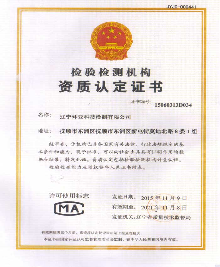 遼寧環亞科技檢測有限公司成立于2014年11月3日,注冊資金1100萬元,位于遼寧省撫順市順城區規劃街3-64號樓3號門市、4號門市和5號門市,AAA信用單位,是一家集職業衛生、安全技術、環境監測為一體的專業技術服務公司。業務范圍涉及職業衛生檢測與評價、環境監測、安全技術咨詢服務、職業健康培訓等,業務遍布遼寧省14個地級市和16個縣級市。 公司建筑面積533平方米,擁有中心化驗室、有機前處理室、光譜室、色譜室、高溫室、天平室、試劑室、儀器設備室等共計230余平米的專業化實驗室;辦公室、辦公大廳、檔案室、會議室等300余平米的現代化辦公場所。公司已通過遼寧省市場監督管理局批準的中國計量認證CMA資質《檢測檢驗機構資質認定證書》(證書編號:21061205D014),資質有效期至2027年11月8日,具備向社會出...【更多】